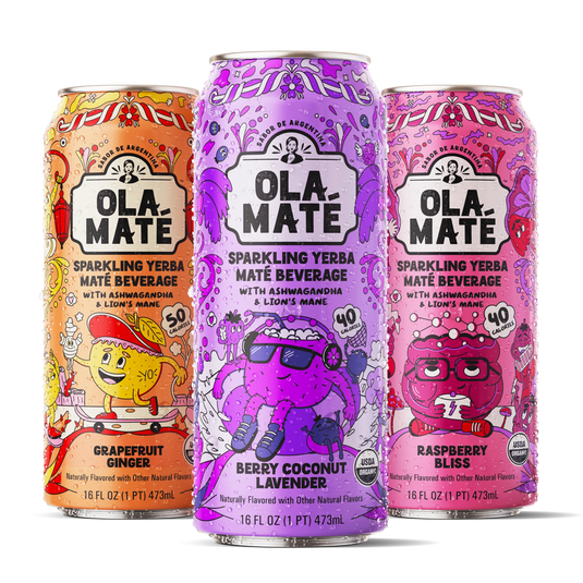 Can’t pick a favorite? You don’t have to. Our Variety Pack includes all three signature Ola Maté flavors—Grapefruit Ginger, Raspberry Bliss, and Berry Coconut Lavender—crafted with organic yerba maté, functional adaptogens, and clean ingredients.